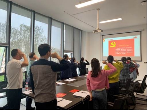 随后,支部主题党日活动阶段,全体党员重温入党誓词,集体诵读党章,学习《中国共产党章程》第八章相关内容。