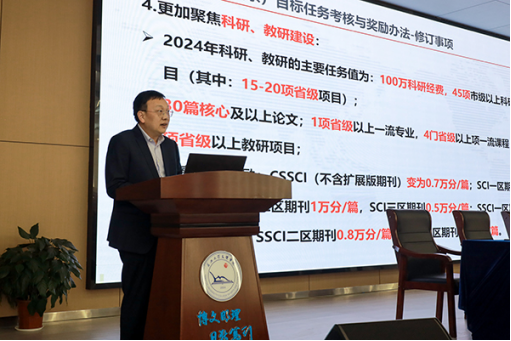 校领导学院副经理肖寒芝宣讲解读了2024年机关部门和院(系)目标任务的考核和奖励办法,指出了高校开展目标考核的目的和意义。尤其在今年转设的关键年继续深入实施目标考核,有助于明确学校年度发展目标,为转设提供发展要素支撑;有助于学校在转设与发展进程中,在人才培养、科学研究、社会服务等方面达到相应的标准和要求,为学校的长远发展奠定坚实基础。