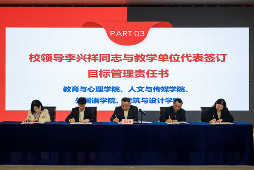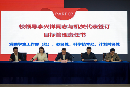 校领导学院经理李兴祥与机关、教学单位代表签订目标管理责任书。