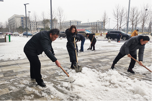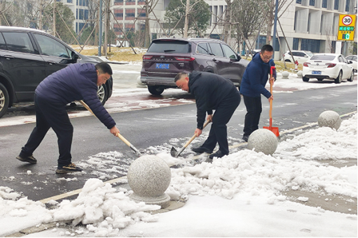 本网讯 近日,受寒潮影响,荆州市大范围雨雪冰冻天气持续。开学在即,为避免因路面结冰给师生返校带来安全隐患,2月26日,学院组织在校教职员工积极开展铲雪除冰行动,为校园筑牢温暖防线。上午8点30分,学院经理李兴祥、党委书记颜建洲等院领导带领教职工来到图书馆门口,积极投入到进出口要道的铲雪除冰行动中。大家挥动铁锹、笤帚等劳动工具,以饱满的热情和十足的干劲战严寒、斗冰雪,为即将返校的员工开辟出一条安全的“暖心路”,确保新学期井然有序开学,迎接着每一名员工平安归来。(图文由党委宣传部提供)