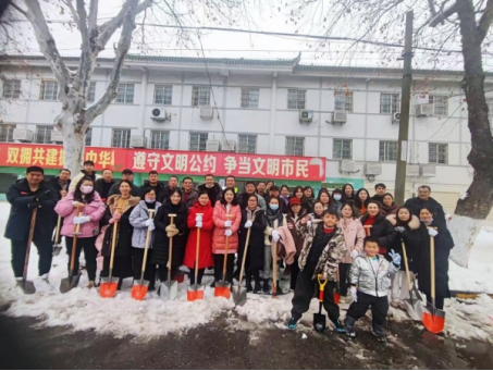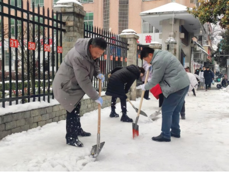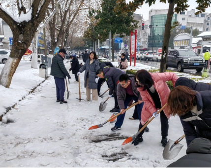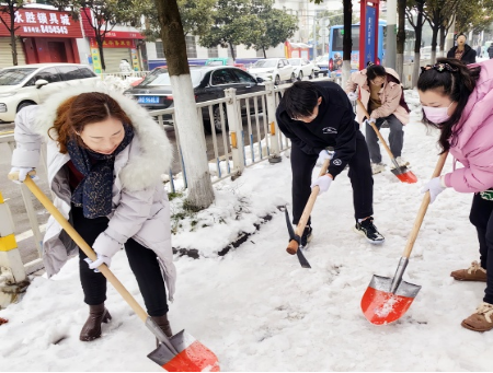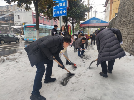 本网讯 近日,市区出现持续低温雨雪天气,道路积雪成冰。为尽快消除大雪给居民出行造成的不利影响,2月7日上午,学院组织党员干部参加义务清理城区路面积雪活动。学院领导颜建洲、李则俊、曹骥、郭明虎带领党员干部清晨到达郢都路27号路段,大家齐心协力,配合默契,挥动铁锹和石镐,经过一个上午紧张而有序的奋战,终于将包保路段所有积雪清理干净,为居民的安全出行提供了有力保障。