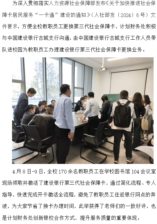 中国建设银行古城支行进学校办理第三代社会保障卡