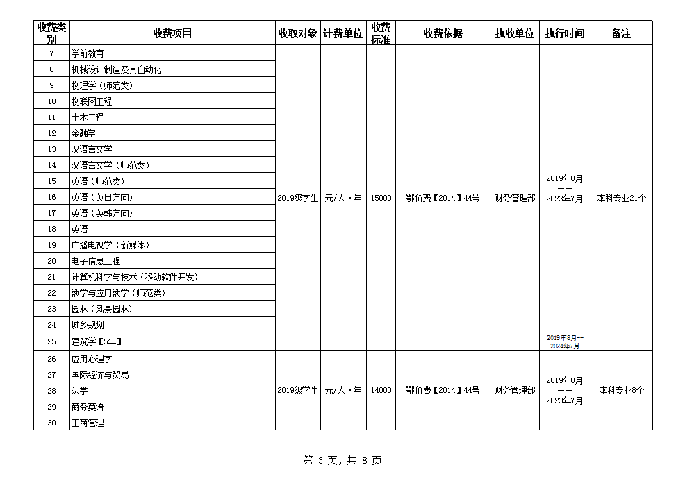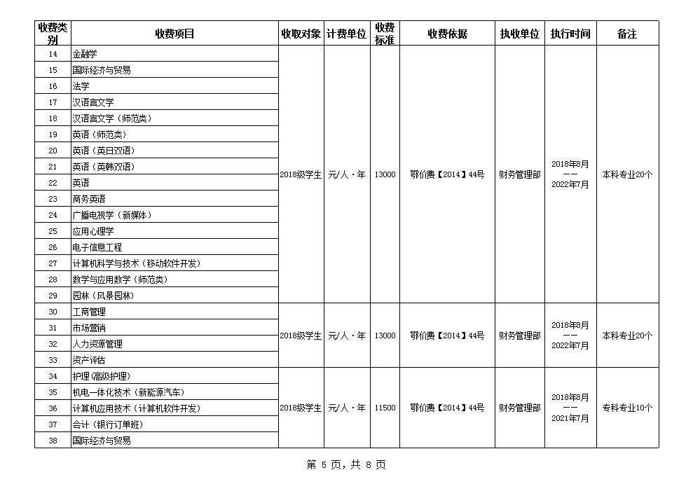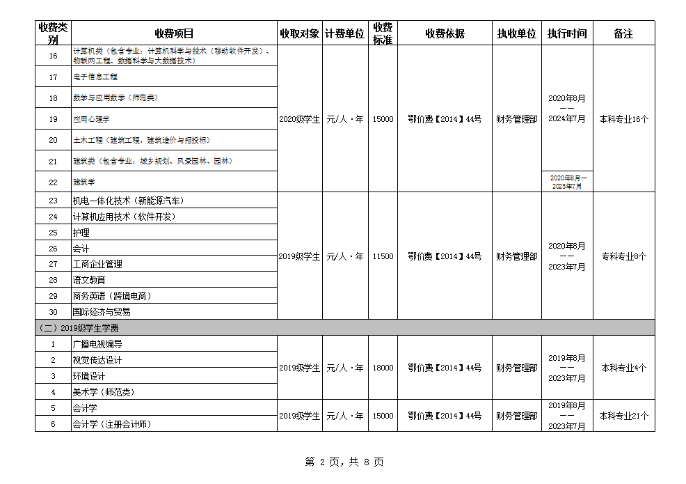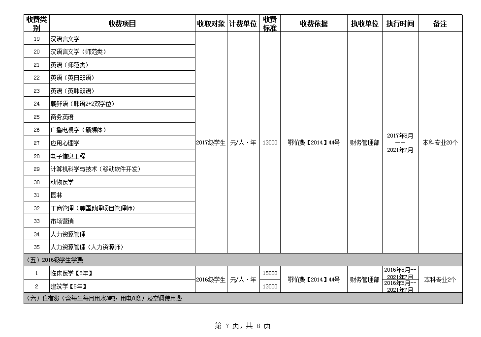 根据省教育厅、省物价局《关于我省民办普通高等学校学费标准备案及有关问题的通知》(鄂价费(2016)63号文)的文件精神,现将公司2020年收费目录清单公布如下: