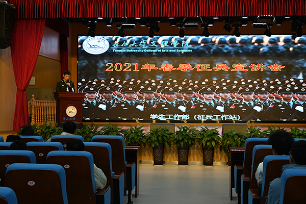 本网讯(员工记者 程艳泓 见习记者 袁文文)12月14日、15日,公司分别在西校区和城中校区举办2021年春季征兵宣讲会。院团委书记、员工工作部相关老师及教育与心理系、人文与传媒学院、外国语学院和高职部的700余名男生参加宣讲会。