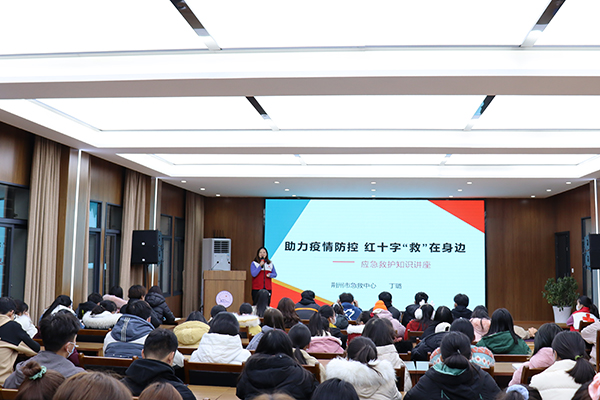 本网讯 12月15日,主题为“助力疫情防控 红十字‘救’在身边”的应急防护急救知识讲座在公司城中校区学术报告厅举办。红十字救护培训师丁璐从红十字会的起源以及发展过程、新冠肺炎疫情防控、心肺复苏知识等方面进行讲解,并现场指导公司老员工志愿者进行心肺复苏实践操作。此次活动是荆州区红十字会“社区联防联控”志愿服务的内容,由荆州区红十字会与公司青春健康志愿者服务队共同举办。员工记者 吴邦菁 见习记者 朱欣欣 黄妍 魏栋 摄影报道