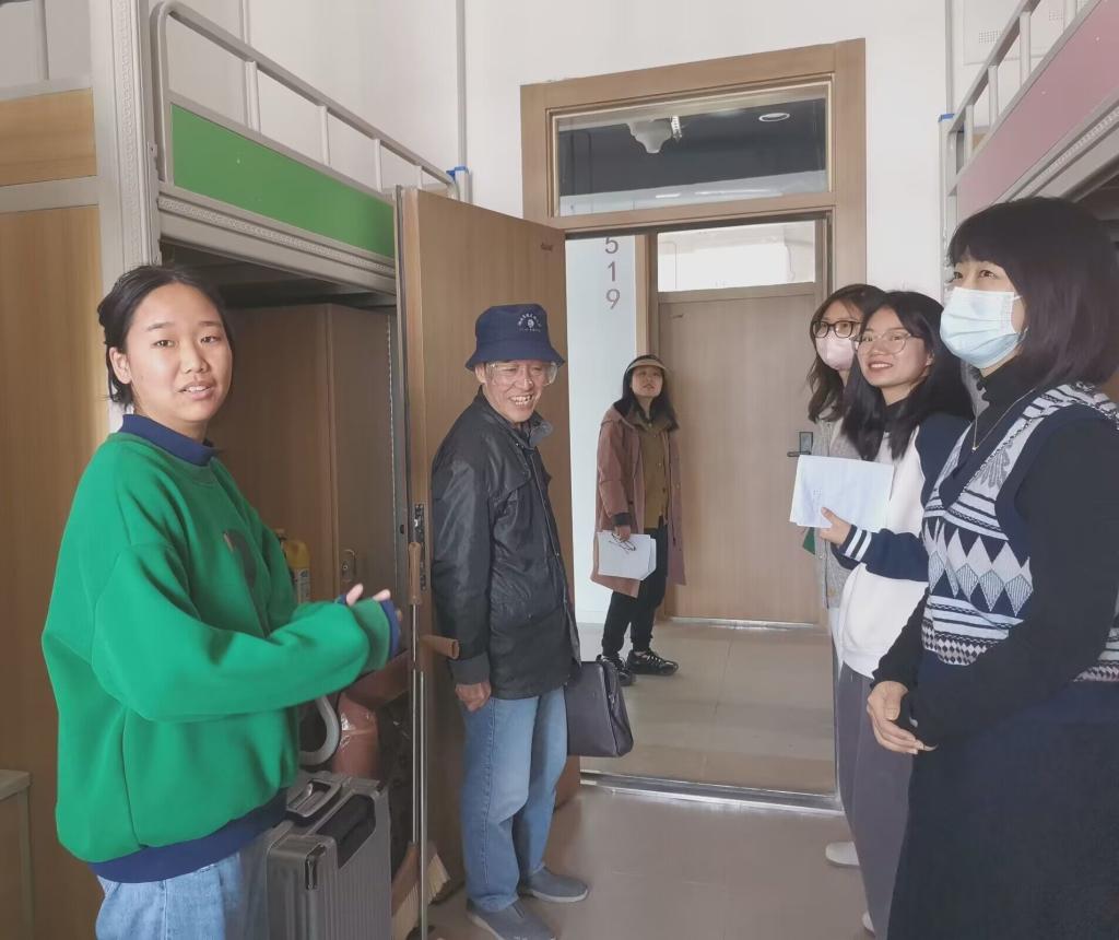 本网讯(通讯员 刘诺)管理学院搬迁工作完成后,为了更加深入的了解各位同学的需求,确保广大同学的身体健康和生命安全,营造良好的学习生活氛围,3月30日下午,管理学院经理陈元芳、党总支书记胡沿林,副书记杨琪、办公室主任许晶洁和全体班主任及辅导员对员工宿舍进行搬迁后视察。