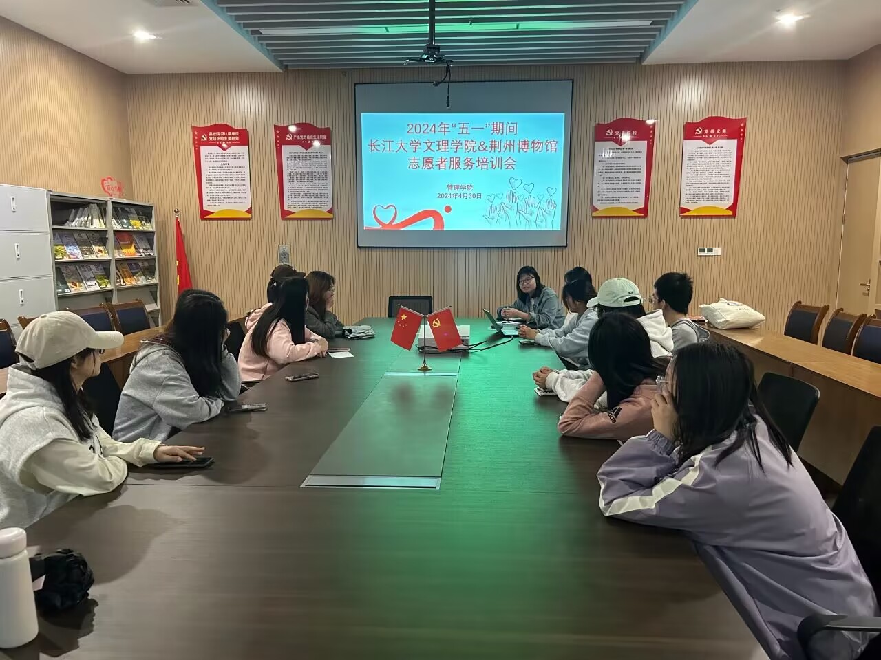 节前,管理学院对志愿者进行了分工分组,每天安排10名志愿者在博物馆内外开展志愿服务,并从服务态度、志愿形象、景区介绍、荆楚文化等方面进行了岗前培训。