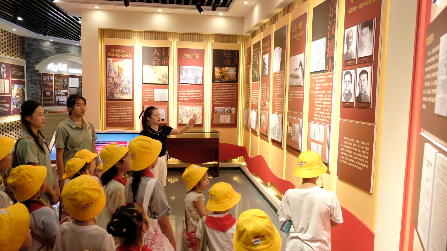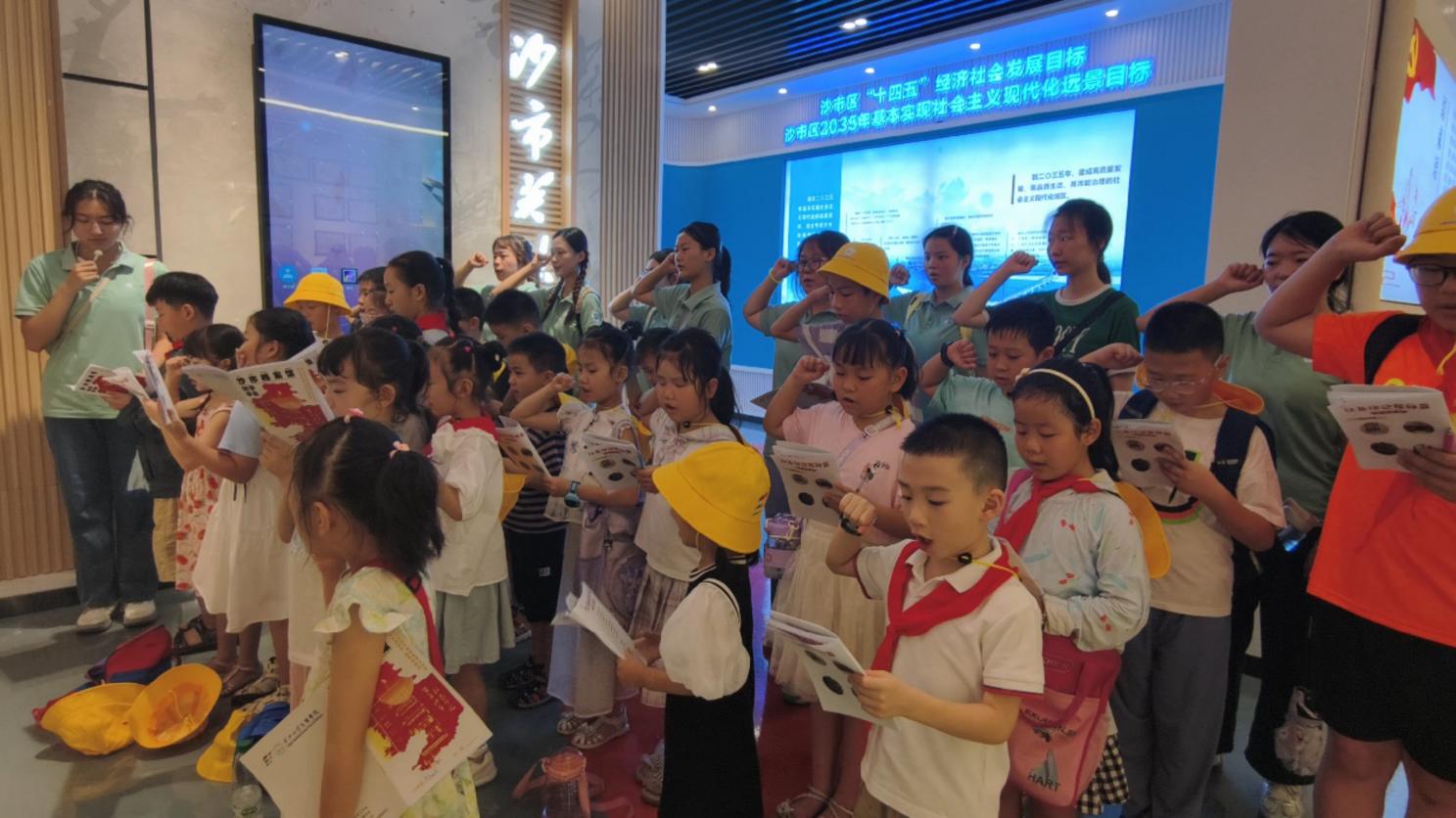 活动当天,孩子们在志愿者的带领下整齐列队,迈着轻快的步伐走向研学第一站 —— 沙市区党员政治生活馆。踏入馆内,在讲解员的细致引导下,学员们依次参观了 “党史溯源”“革命烽火” 等八大主题展区。历史文献仿佛带着大家穿越时光,去触摸家乡那深厚的红色根脉;旧模具静静伫立,诉说着工业发展的艰辛与辉煌印记;革命烈士事迹展板前,一个个感人至深的沙市精神故事,让孩子们听得入了神。