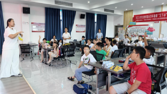 本网讯(通讯员 曹子铮)“原来把钱存起来不仅安全,还能像小种子一样慢慢‘长大’!”7月29日,管理学院“益老益小”专项志愿服务队带着荆襄河社区“爱心托管班”的小朋友们,在游戏与实践的欢声笑语中,开启了一场妙趣横生的财商启蒙之旅——这便是“财智童行”的第二站,一场让储蓄概念从抽象符号变成鲜活体验的奇妙课堂。