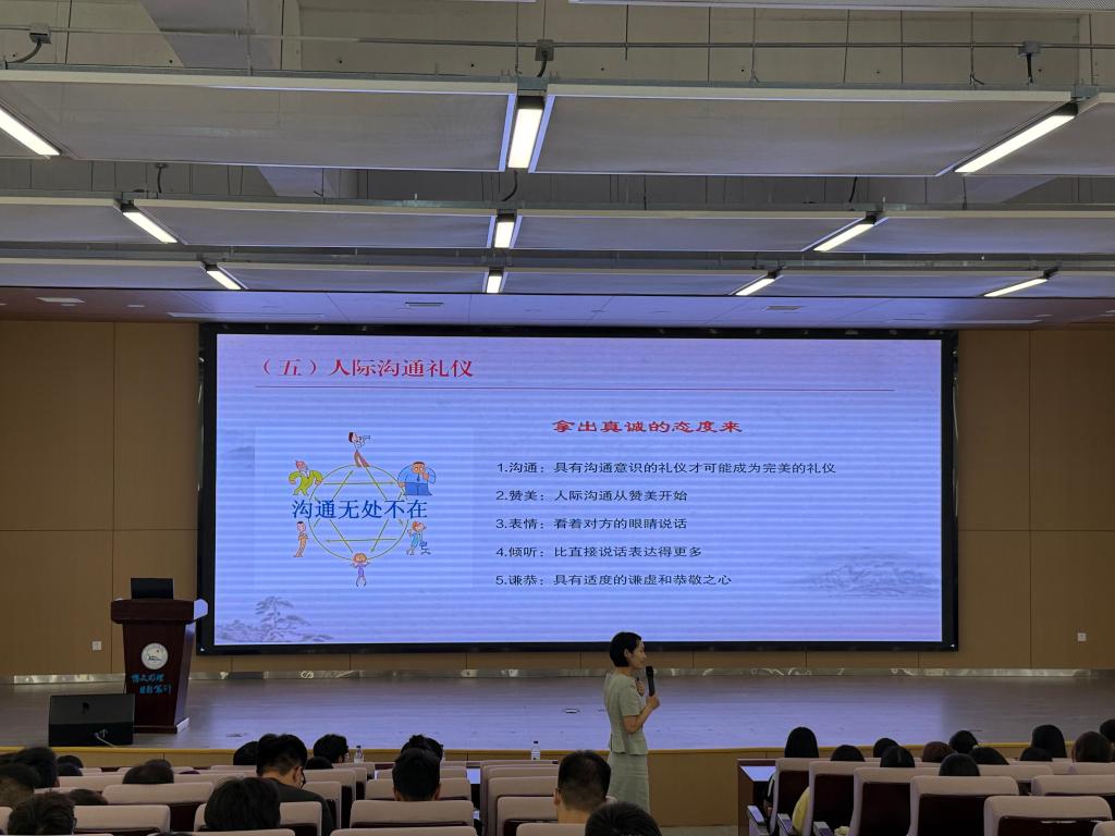 王霞科长提出“律己敬人”是礼仪核心,强调仪容是公务活动的“第一张名片”。她通过对比不同行业着装案例,让同学们直观理解不同行业着装的细微差异,助力大家精准塑造职业形象。