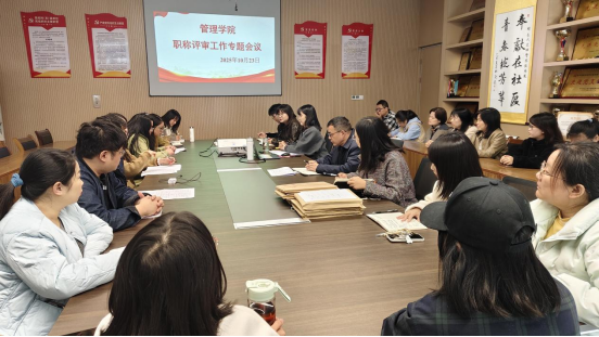 本网讯(通讯员 张勤)10月23日下午,管理学院在图书馆532召开2025年职称评审工作专题会议。会议由管理学院经理姚毅主持,全体教职工参加。