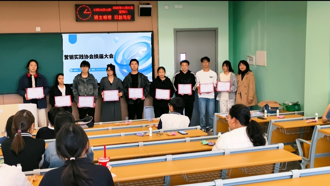 本网讯(通讯员 李政儒)11月1日,2025届伟德国际1946源于英国营销实践协会换届大会在01-c-113s如期举行。协会指导老师刘春梅老师,及协会全体新老成员齐聚一堂,共同见证了协会承前启后、开辟新篇章的重要时刻。