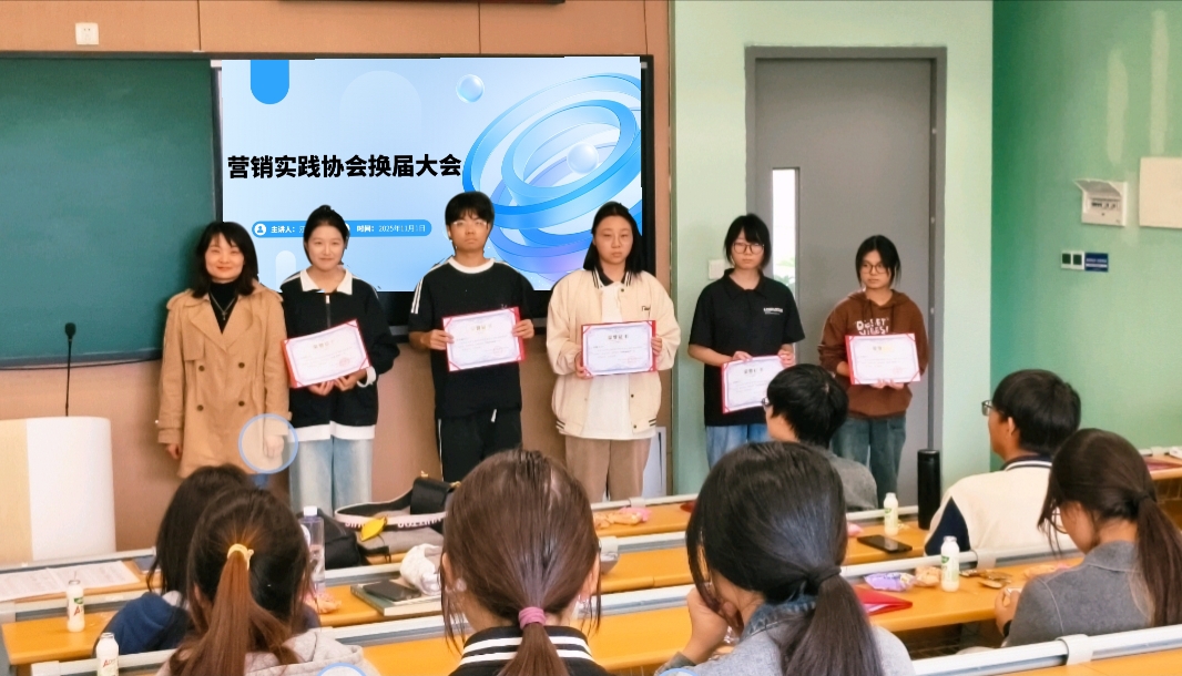 最后,全体成员与老师合影留念,记录下这一充满希望与活力的瞬间。此次换届大会的顺利举行,不仅为营销实践协会注入了新鲜血液,更明确了未来发展方向。相信在2025届干部的带领下,在全体成员的共同努力下,营销实践协会必将薪火相传,续写新的辉煌篇章,为校园文化建设和员工综合素质提升贡献更大力量。