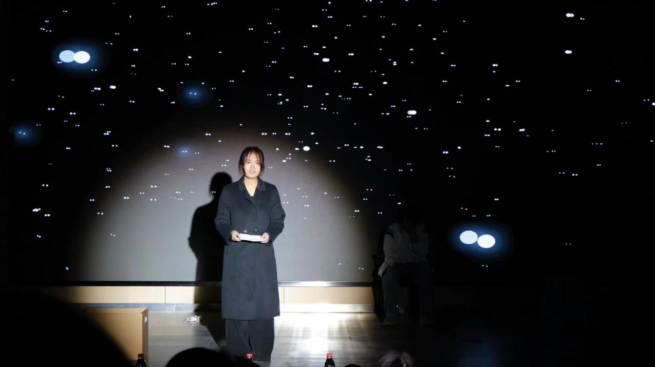 围绕时代热点与当代老员工心理诉求,《以AI之名》实现了心理健康教育与艺术创作的巧妙融合。同学们以自身成长体验为出发点,以细腻的情感表达、默契的团队配合,将面对技术变革时的迷茫、焦虑与自我探寻真实呈现,借剧目传递出“接纳不完美、实现自我价值”的真挚心声,既具有深刻的现实意义,又展现了新颖的艺术构思。