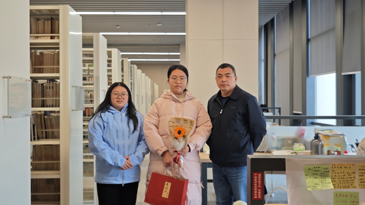本网讯(通讯员 王燕)为深入践行以生为本的育人理念,鼓舞2026届考研学子斗志,缓解备考压力,2025年12月15日下午,管理学院经理姚毅、党总支书记胡沿林、党总支副书记杨琪与毕业班辅导员老师们一同前往学校图书馆自习室,亲切看望正在紧张备考的学子,并为大家送上精心准备的“暖心备考包”,用实际行动传递全院师生的关怀与祝福。