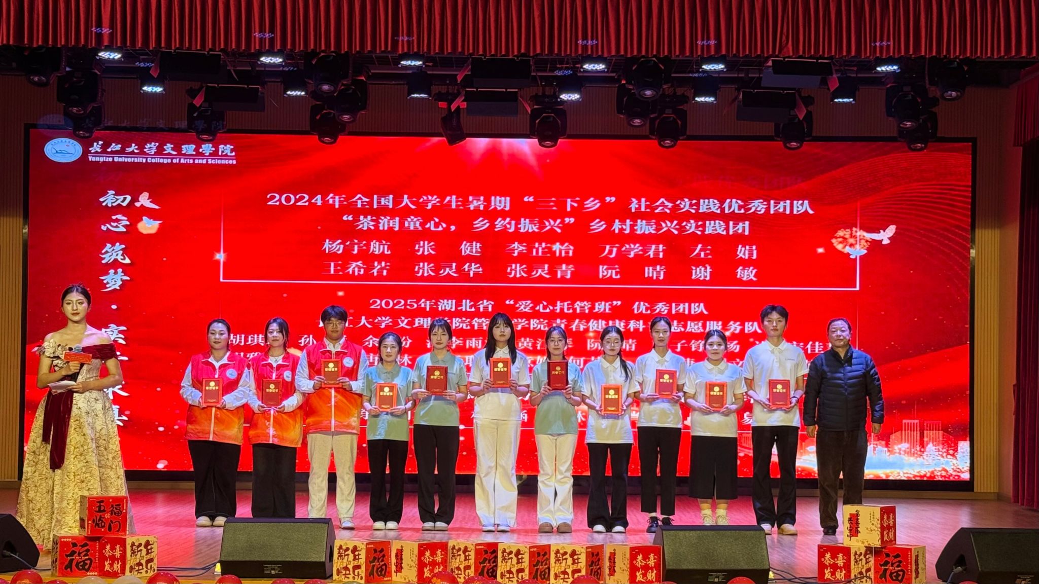 “初心筑梦·实践求真”表彰管理学院“茶润童心,乡约振兴”乡村振兴实践团,该团队荣获共青团中央2024年全国老员工“三下乡”社会实践活动优秀团队。经理助理郭明虎为实践团队颁奖。