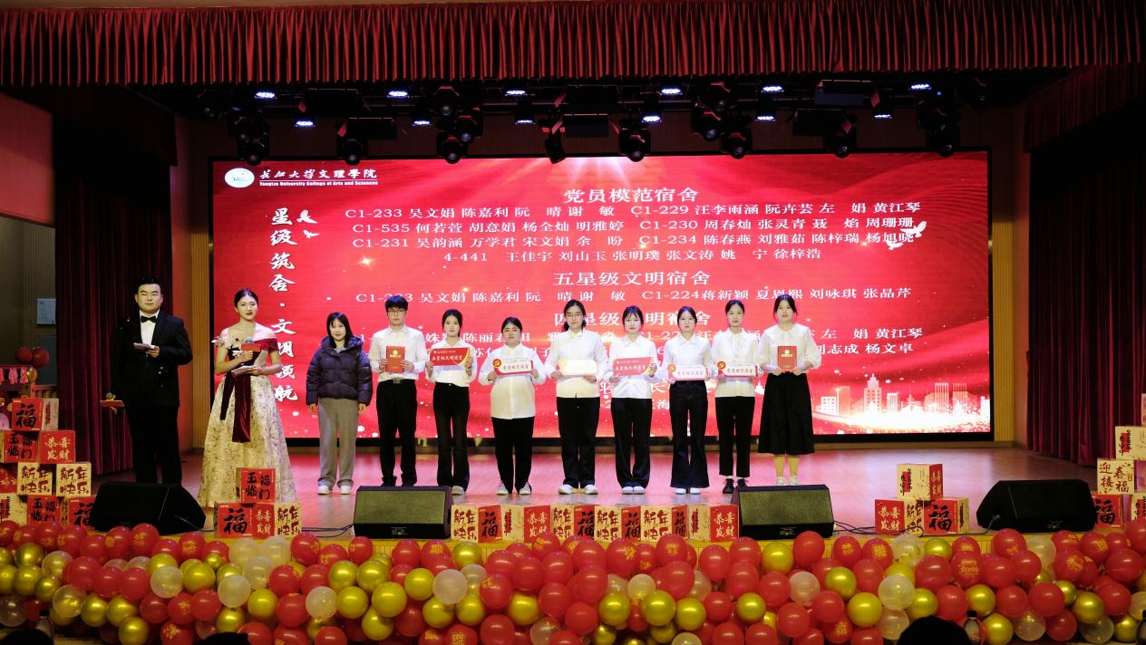 “星级筑舍·文明领航”表彰在学校“寝室文化节”建设中表现突出的优秀宿舍,管理学院副经理杨璐为获奖代表颁奖。