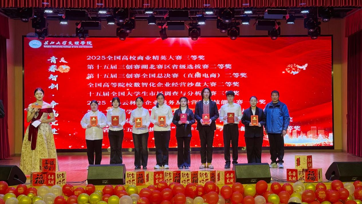 “青春智创·争鸣竞进”表彰在“挑战杯”“三创赛”“立信杯”等学科竞赛中摘金夺银的优秀团队。党委员工工作部副部长冉继强为科创团队颁奖。