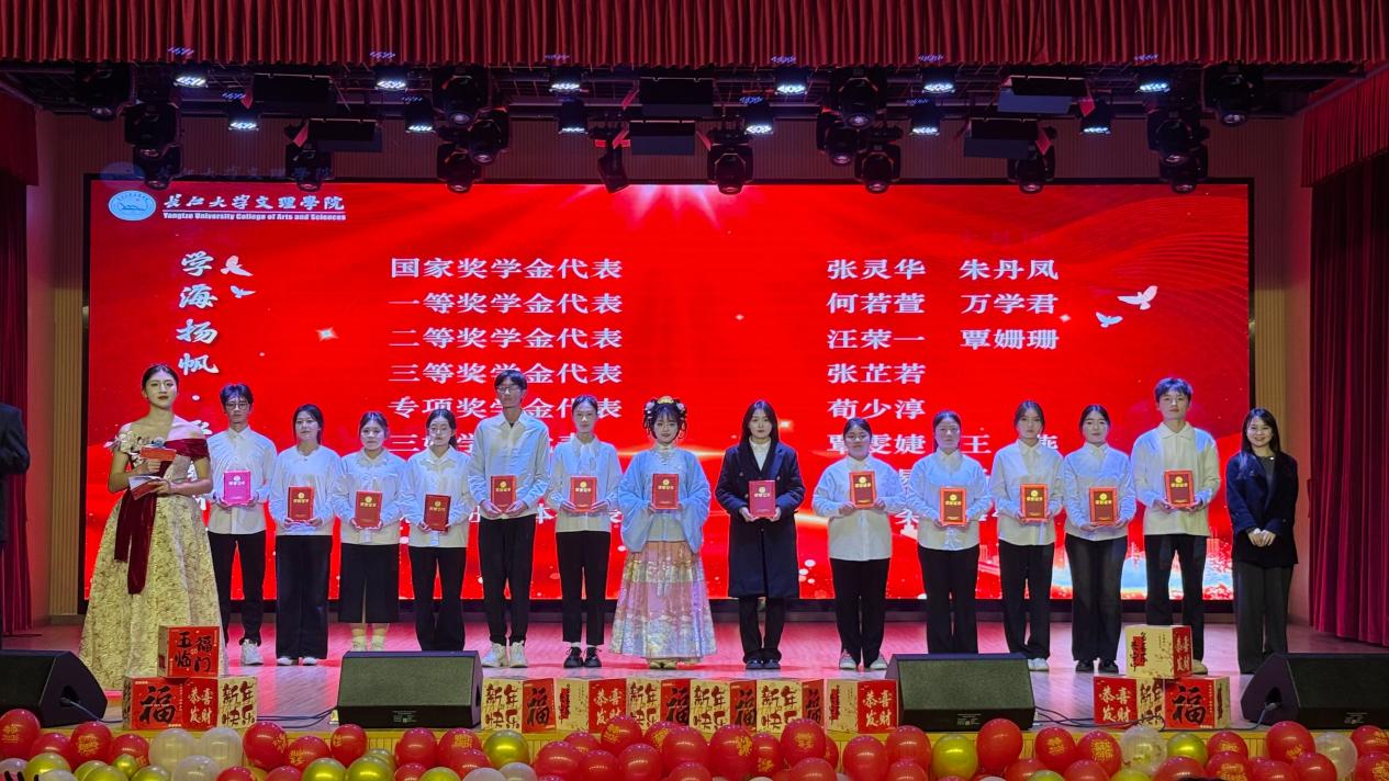 “学海扬帆·逐梦前行”表彰国家奖学金、学院奖学金等个人、集体荣誉获得者,党委员工工作部副部长黄婷婷为优秀学子与先进集体颁奖。