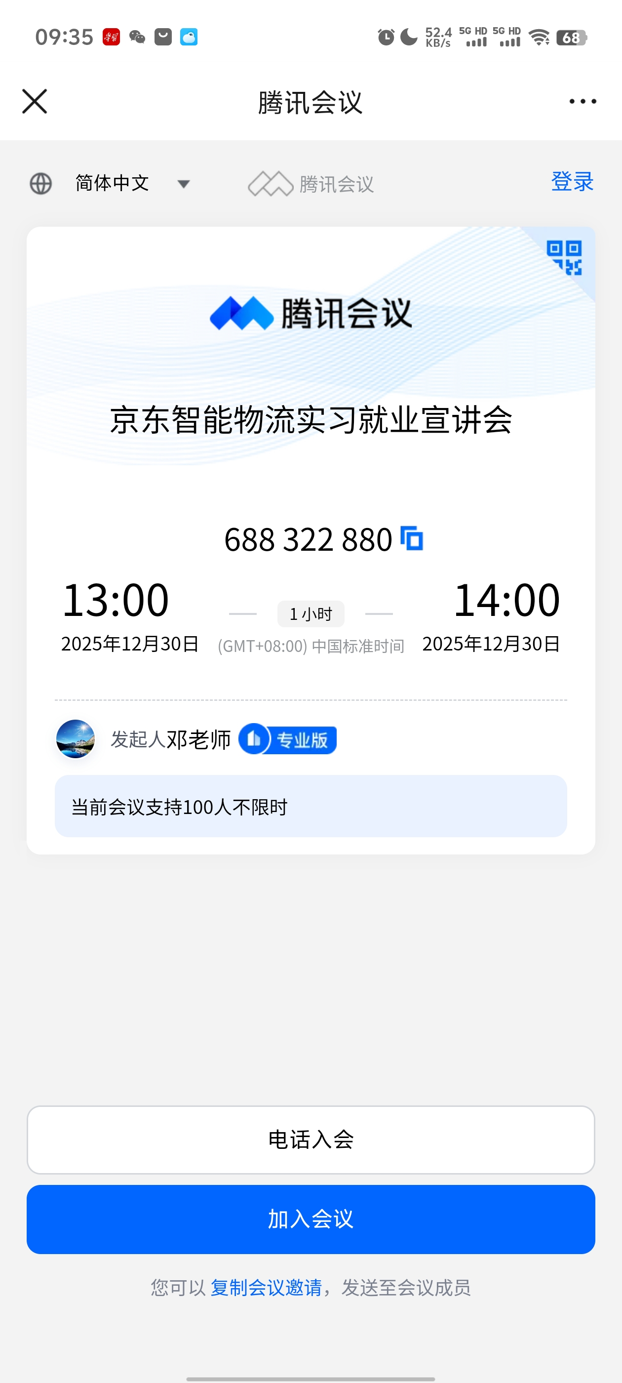 本网讯(通讯员 李平)为深化校企合作,拓宽毕业生高质量就业渠道,2025年12月30日13:00-14:00,管理学院通过腾讯会议平台成功举办“京东智能物流实习就业空中宣讲会”。本次宣讲会吸引了学院2026届工商管理、人力资源管理、市场营销、会计学等相关专业近300名毕业生在线参与,学院三位毕业班辅导员李平、杨柳、侯韦全程参会并提供就业指导。