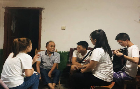 调研团走访村民家,进行深度的问卷调查