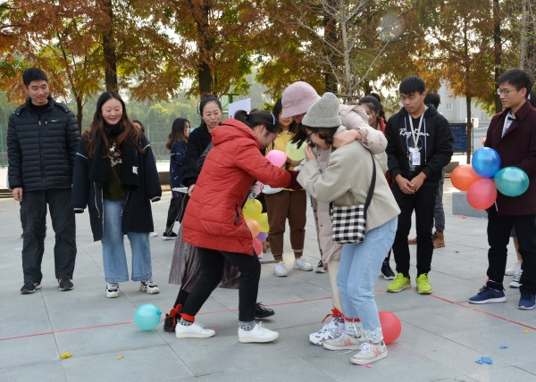 涂晓洁老师组织的“同心踩气球”,有助于大家放松心情、愉悦身心,颇受同学们青睐,两人一组踩爆对手气球,仿佛生活中的烦恼都随着气球的爆炸而去。