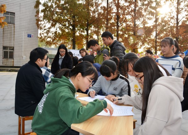 本网讯(通讯员 王行舟)为了营造老员工心理健康教育的良好氛围,促进老员工心理健康发展,2018年11月22日下午3:00,管理系于七舍门口广场开展了“呵护心灵,护航青春”心理健康教育活动,活动由我系辅导员老师组织,大一到大三550余名在校员工参加。