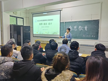 本网讯(通讯员 季洁)2019年12月17日下午,我系在1教407教室举办主题为“感恩 励志 成才”的资助育人感恩教育。我系党总支副书记胡沿林参会,我系受助员工参加。