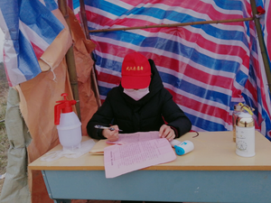 在湖北省武汉市黄陂区木兰乡令牌店村进行防疫工作,主要负责控制人员和车辆的出入,对他们进行体温测量和信息登记,并尽量劝返;也要对村里需要出去购买生活必需品的村民进行消毒,每天都在忙碌中度过。在谈及参加自愿工作的初衷,她讲到:“因为村口离家比较近,没有课的时候,希望可以去做点有意义的事情。而做为一名新时代青年,更应该在这关键时刻挺身而出,为防疫工作献一份力。”因为人间有爱,所以没有永远的黑夜,在黑夜之后就是黎明;心里有感恩,所有没有漫长的寒冬,霜雪过后,春天的讯息便飘然到来。通过这次的志愿者活动,也让她明白没有过不去的坎,更没有战胜不了的困难。越是危急关头,就越能体现出中国人民的团结一致的精神。