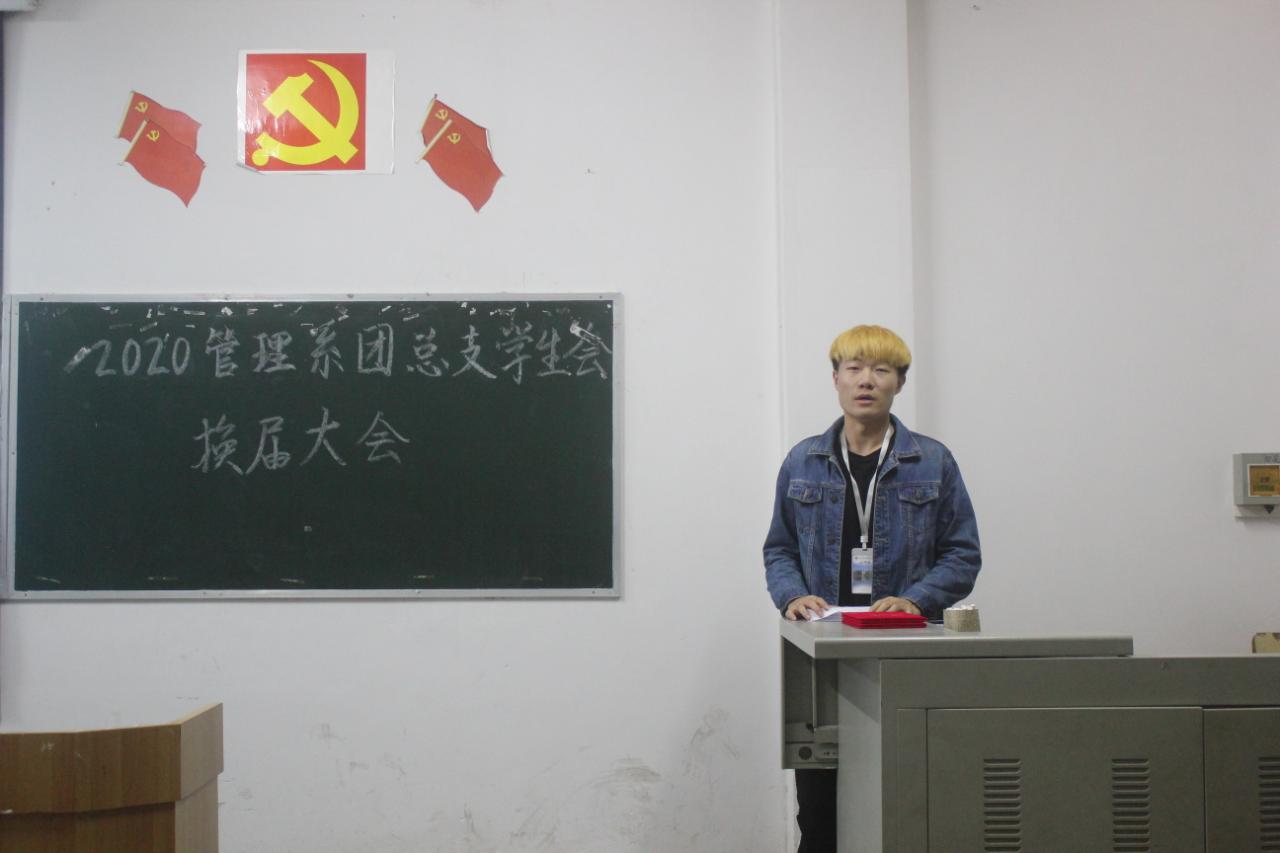 接着,新生代表吴明宙代表管理系团总支员工会全体新成员表达了对进入员工会的荣幸以及老师及学长学姐的信任,并表示:“一定会不负老师和上届干部的重托,为管理系尽自己最大的努力。”