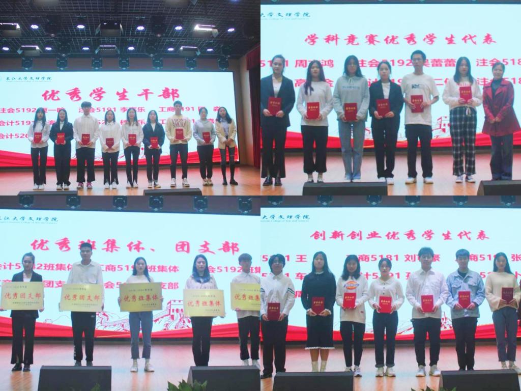 会计5201班吴明宙代表优秀志愿者发言,他号召同学以文明使者的名义,携起手来,共同投身于志愿者服务中,共同打造好这一支队伍,为系部争光,为学校争光。学科竞赛优秀员工代表周志鸿希望各位同学大胆尝试各类创新创业大赛和专业类比赛,不要畏惧失败,勇敢向前进。优秀团支部代表吴蕾蕾分享了建设优秀团支部的经验,表示班级将会继续以集体为荣,不负众人,共同营造管理系辉煌的明天!