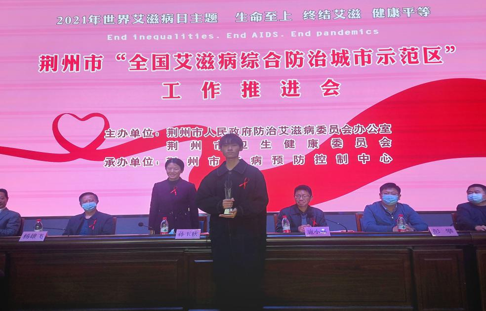 本网讯(通讯员 周夏盈)12月1日上午,2021年“世界艾滋病日”宣传活动暨高校原创防艾短视频颁奖典礼在荆州市疾控中心新址举行,我系受邀参加,在学院团委的带领下,我系三个作品代表师生共8人参加颁奖典礼。