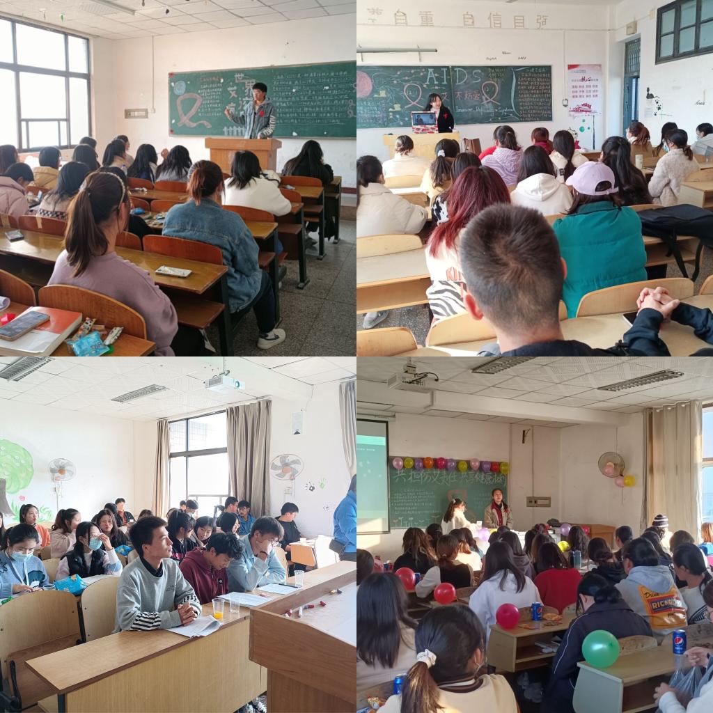 围绕今年12.1世界艾滋病日主题,各班精心布置黑板报,利用了PPT、视频讲解、知识竞答等多种方式,从艾滋病的概念和目前的概况、传播途径、危害及预防等方面对艾滋病相关知识进行了详细的介绍,着重说明了预防艾滋病的重要性,号召同学们珍爱生命,远离艾滋。在检测方面各班重点介绍了校园内艾滋病检测地点及使用方式,鼓励同学们在发生高危行为时主动检测。在活动中, 同学们也纷纷作出承诺,继续深入学习艾滋病相关知识,将以实际行动来宣传和抵御艾滋病,不歧视艾滋病人,把社会对感染者的爱延续下去。