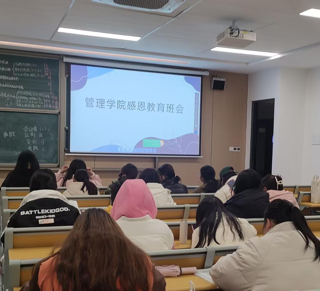 12月10日晚,管理学院各班积极开展“助学金受助员工感恩教育”主题班会。