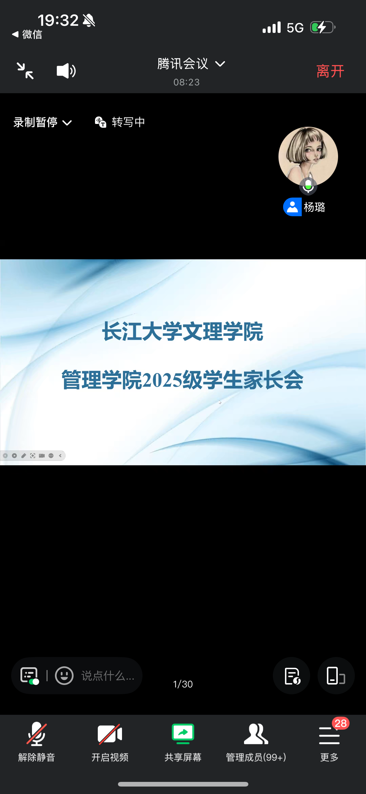 (本网讯:通讯员 杨琪)为搭建家校沟通的桥梁,增进新生家长对学校的了解,凝聚育人合力,助力2025级新生尽快适应大学学习生活,9月5日晚19:30,管理学院采取线上形式召开2025级新生线上家长会。学院领导班子、新生班主任、辅导员以及300余位新生家长、新生参会。本次会议旨在第一时间搭建学院与家长的沟通桥梁,提前传递新生入学流程、专业培养方向及学院育人理念,为2025 级新生平稳衔接大学学习生活、家校协同推进育人工作筑牢开端。会议由学院副经理杨璐主持。