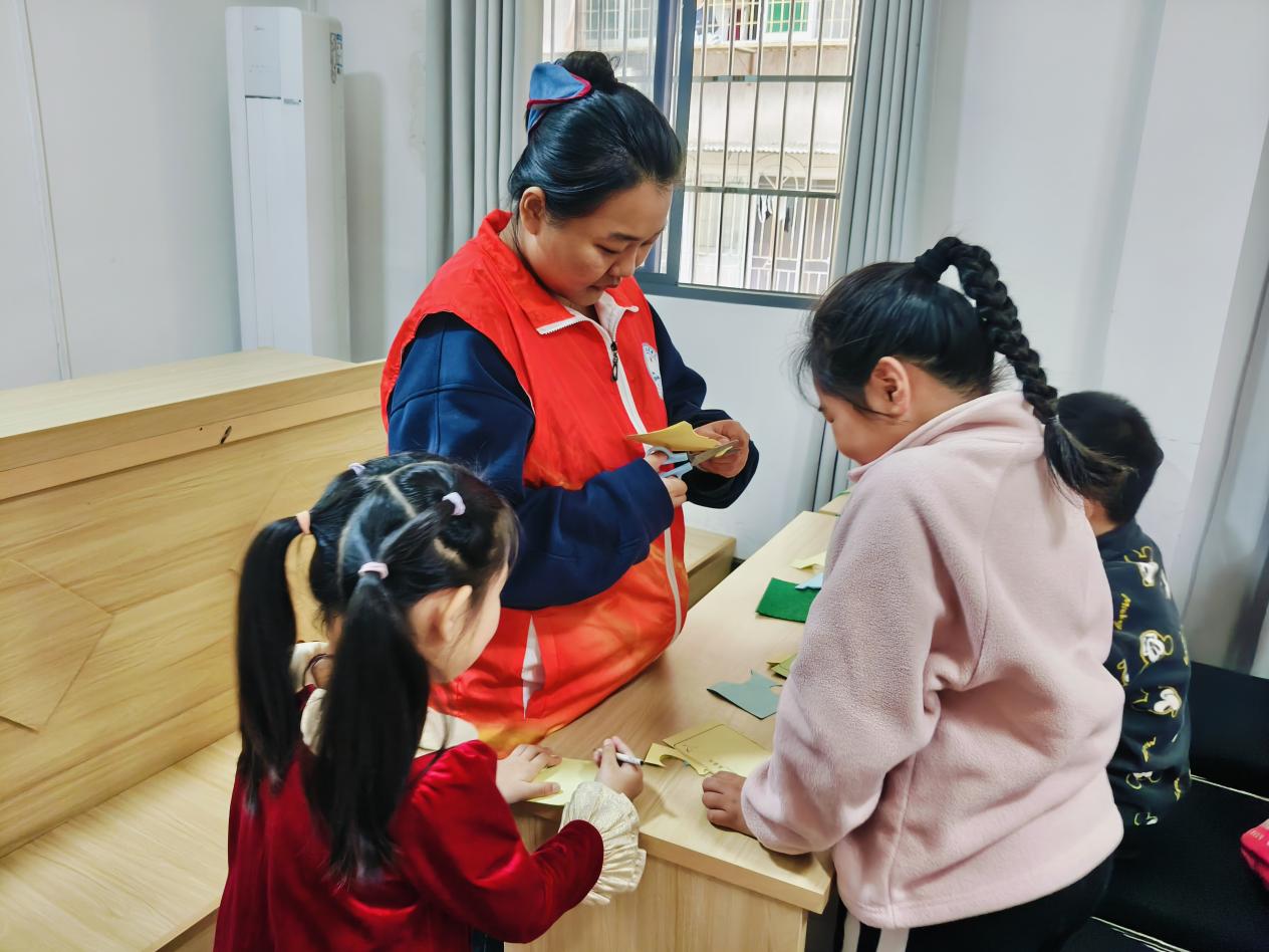本网讯(通讯员 刘林啟)11 月 1 日周六上午 9 点,管理学院青春健康科普志愿服务队携彩纸、剪刀等工具,走进朝阳社区儿童托管班,为 20 多名小朋友带来集非遗体验与语言规范于一体的特色 “周六课堂”,丰富孩子们的周末生活。