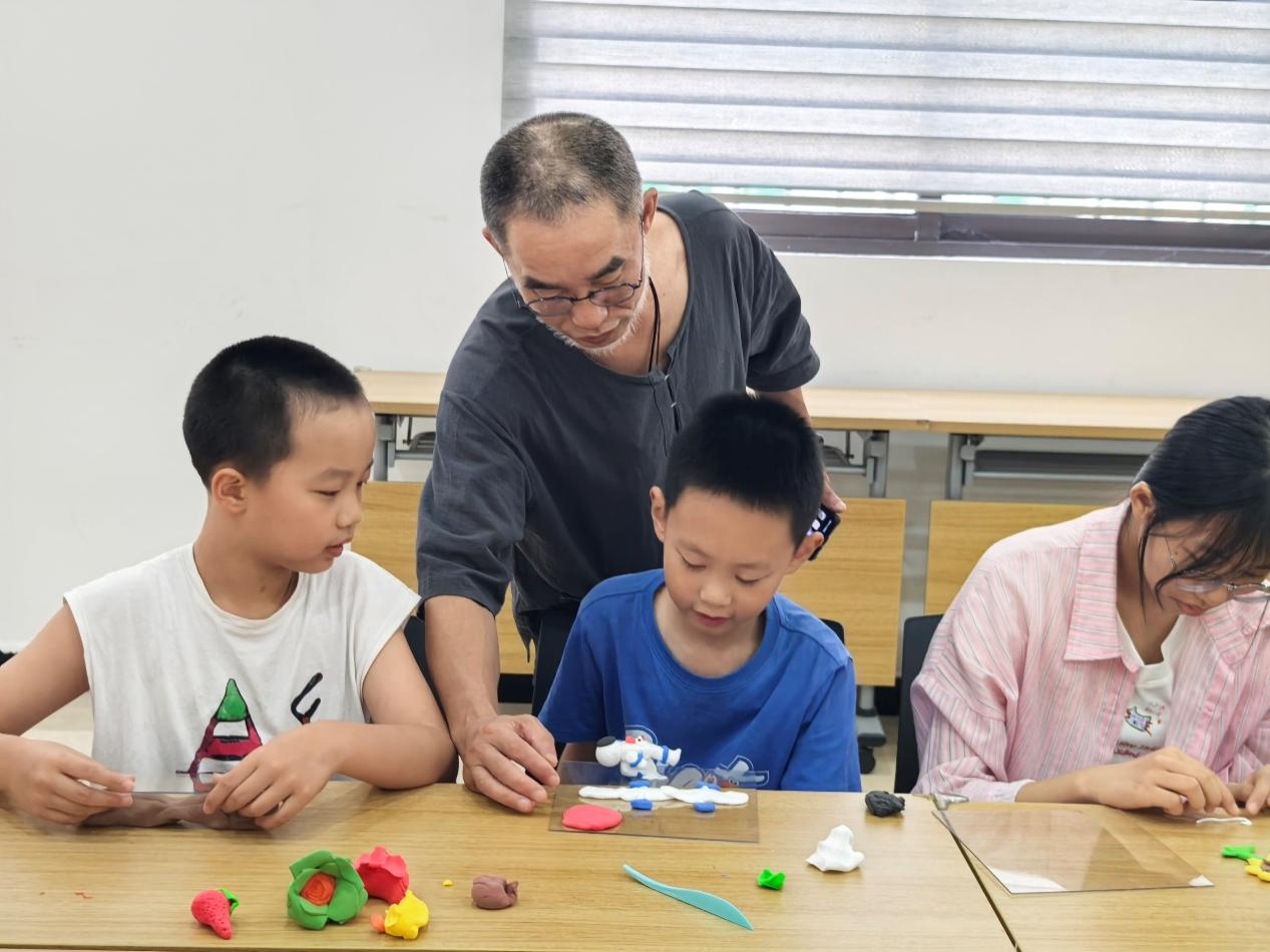 在老师的指导下,孩子们纷纷动手尝试。有的专注捏乖巧可爱的小毛,有的认真雕琢粉白相间的花朵,还有的发挥想象创作在太空中遨游的宇航员。课堂上不时响起“老师您看我这个像不像”的提问声,以及看到同伴作品时的欢笑声,“原来泥巴能变成这么多东西,太神奇了!”小朋友举着自己的作品,兴奋地向志愿者展示。
