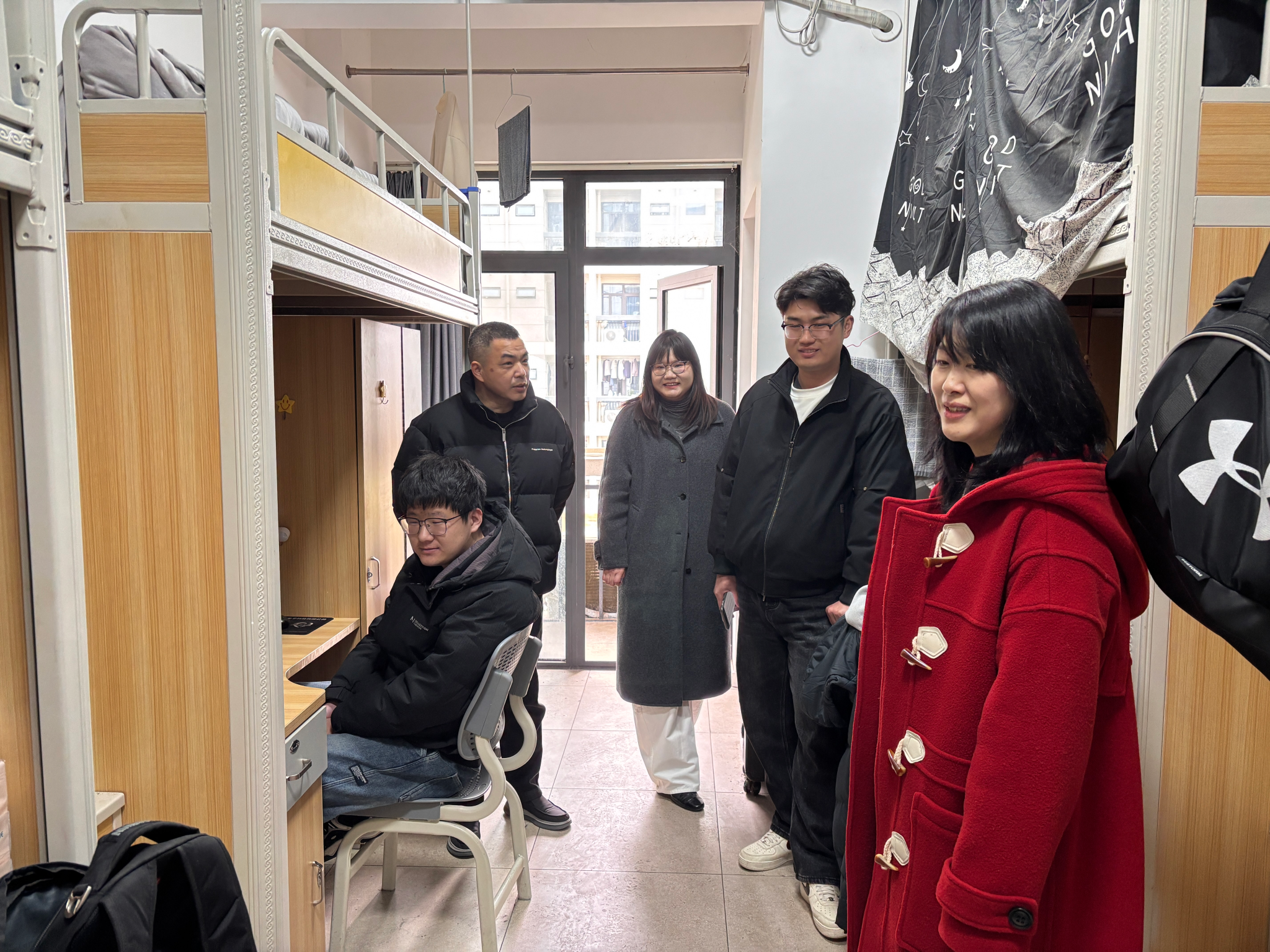 “同学们都回来了吗?假期过得怎么样?”姚经理轻轻敲开了一间宿舍的门,映入眼帘的是正在整理行李和打扫卫生的同学们。同学们纷纷起身问好,原本忙碌的宿舍瞬间充满了欢声笑语。走进宿舍,老师们仔细查看了寝室的设施设备和卫生情况。胡书记摸着一位同学床铺的被褥,关切地询问道:“这被子厚不厚?这几天降温要注意保暖,刚开学要是有什么不适应的,一定要及时跟辅导员说。”一句句贴心的问候,如同一股暖流,流淌在每一位同学的心间。在走访毕业生宿舍时,老师们尤其关注同学们的考研复试和就业进展。叮嘱同学们要是面试中遇到什么‘拦路虎’,记得多和老师沟通,学院的老师都是同学们坚强的后盾。