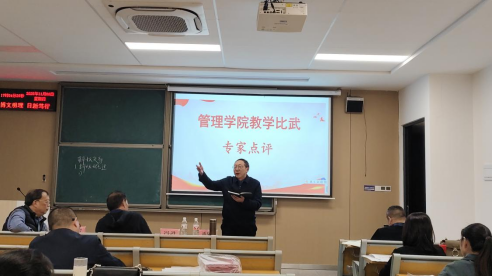 本网讯(通讯员 刘春梅)为提升公司教师的教学能力与专业素养,推动理论教学与实践应用的深度融合,管理学院于2025年11月6日下午在教学楼01-A-403教室举办了青年教师教学比武赛事活动。本次活动特邀学院督导彭开智教授、冯进教授、潘友刚教授担任评委。学院领导、各教研室主任、全体教师及经法系教师共同参与了本次教学观摩。