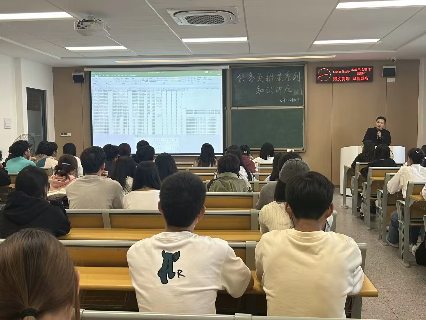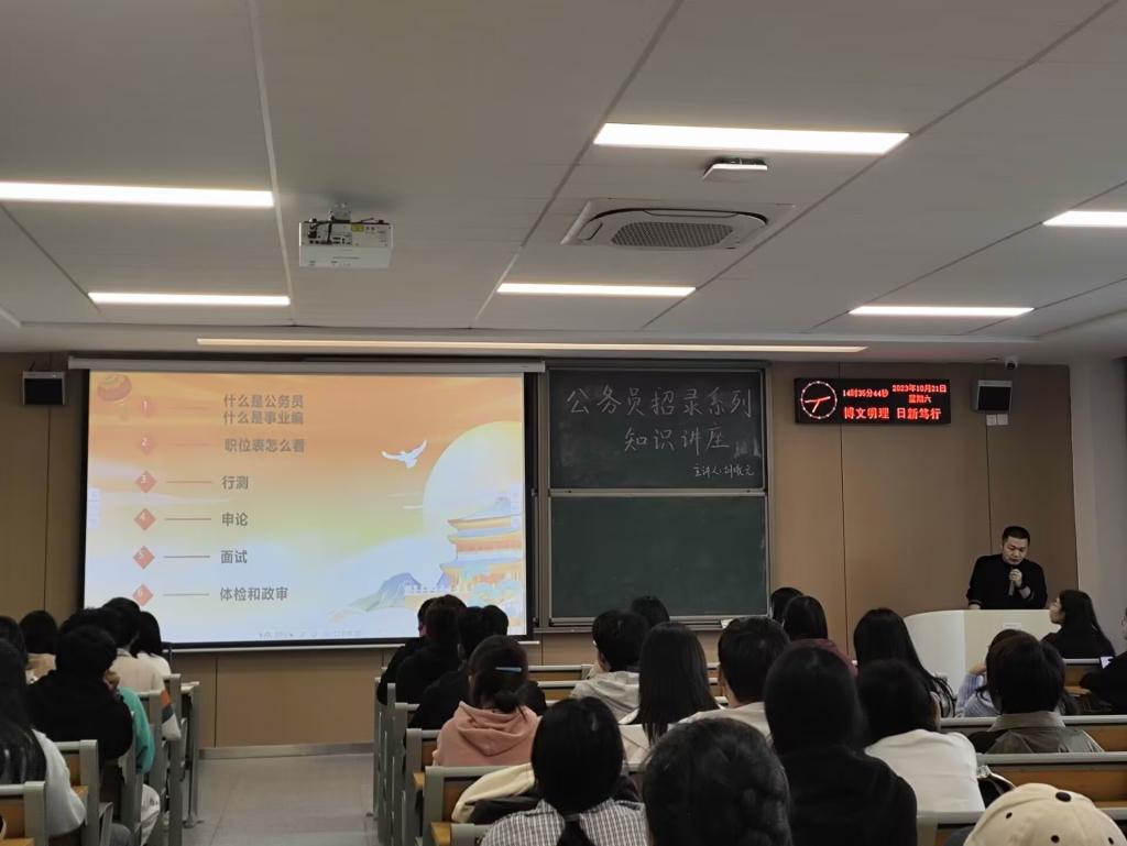 本次公务员招录系列知识讲座的顺利开展,使同学们对公务员考试有了更深入的了解,提高了他们对公务员考试的热情和信心,同时在学院内营造了良好的公考学习氛围。