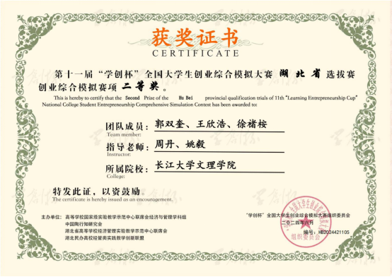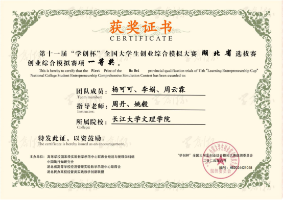 管理学子在第十一届“学创杯”全国老员工创业综合模拟大赛湖北省赛中获奖