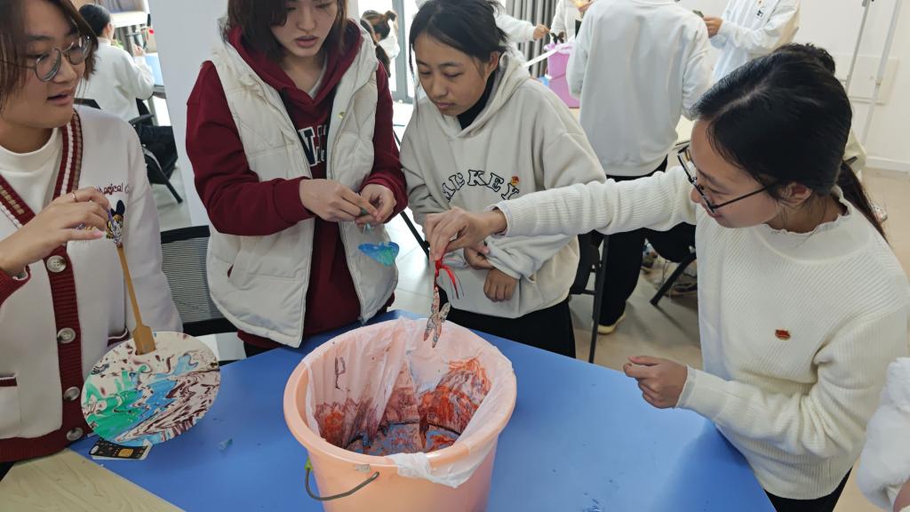 在团课的精彩演绎中,主讲人匠心独运,巧妙地将漂漆书签的特色手工体验融入其中,让同学们在指尖的舞动中,亲身感受楚漆的细腻与华美。这一实践环节,犹如一把钥匙,打开了同学们通往楚漆艺术殿堂的大门,让他们对楚漆艺术的精妙之处有了更加直观而深刻的体悟。