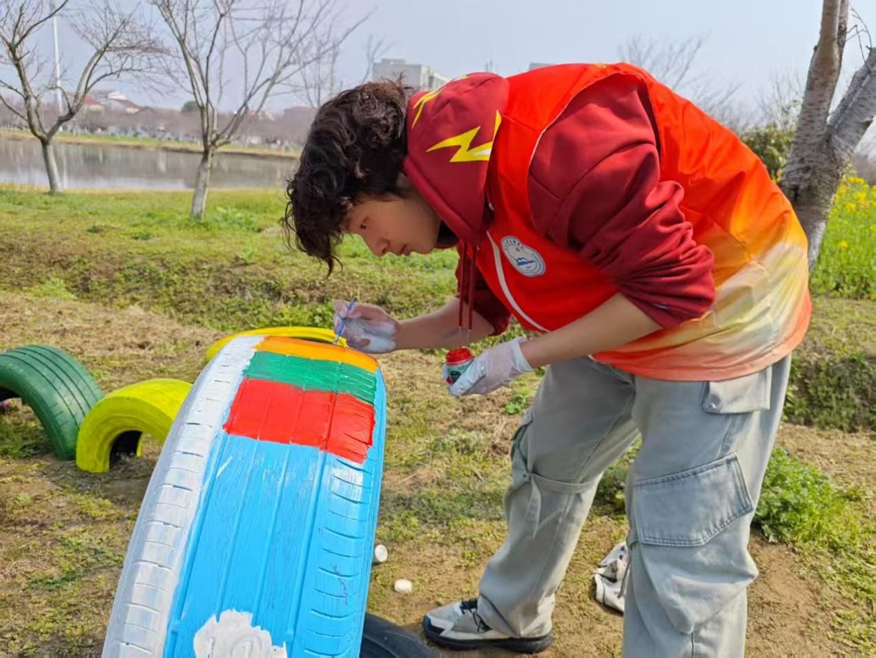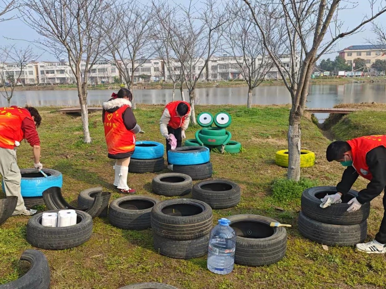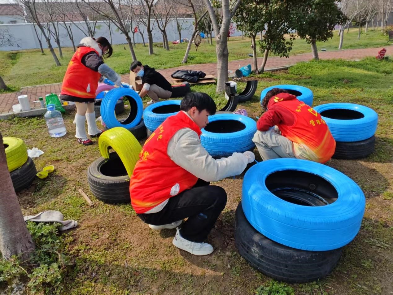 3月7日一早,志愿者们便到达了场地。他们精心筹备,带来了各式各样的颜料、画笔,以及从四面八方收集来的废旧轮胎。这些轮胎在经历了一番细致的清洗与打磨后,褪去了原本的黑旧与粗糙,变得焕然一新,正静静地躺在那里,期待着志愿者们用创意与热情为它们注入全新的生命力。