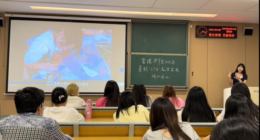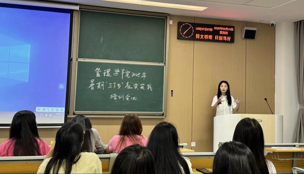 本网讯(通讯员 王思雨)为提升“三下乡”实践活动记录质量,规范摄影与视频制作标准,助力团队高效开展服务与宣传,6月19日,管理学院邀请了杨宇航学姐为大家开展第六次三下乡社会实践培训,分享拍摄经验与工作要点,为实践记录“精准导航” 。