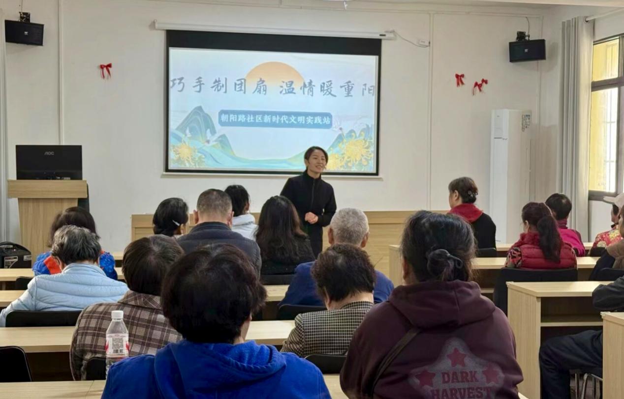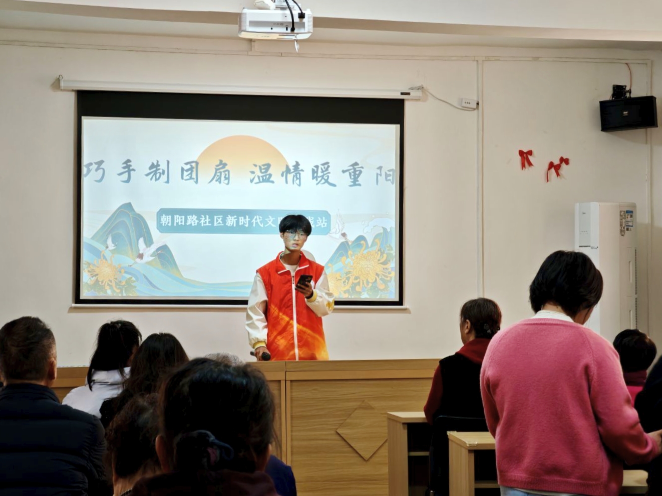 本网讯(通讯员 唐凌锴)为了传承尊老敬老的传统美德,满足老年人的多元需求,增强老年人的归属感和幸福感,促进代际交流与融合。2025年10月28日上午,管理学院青春健康科普志愿服务队联合朝阳路社区为老人开展了以“巧手制团扇,温情暖重阳”为主题的重阳节手工制作活动,其中包含有两大核心环节。