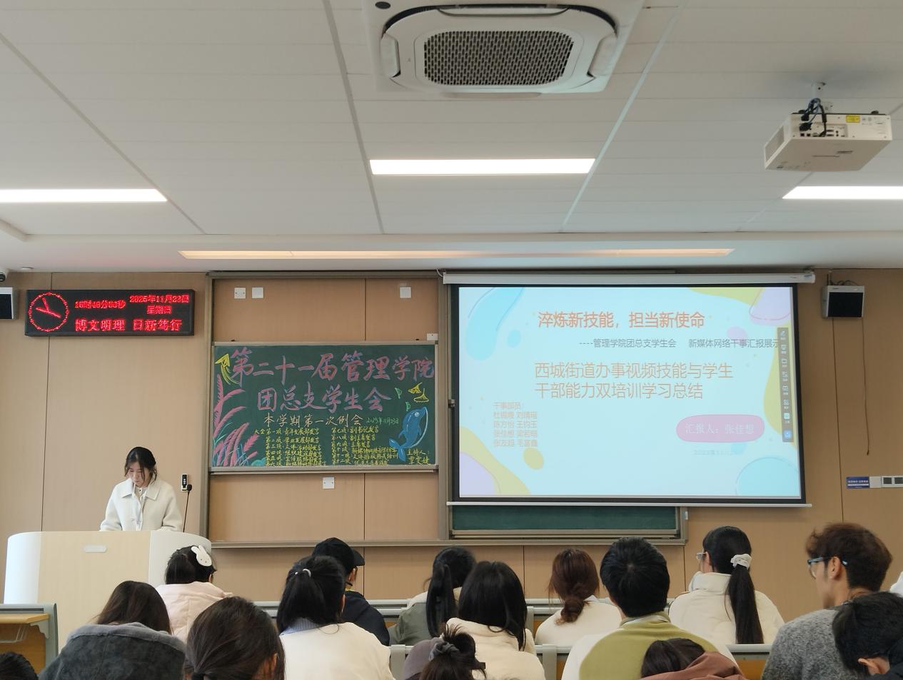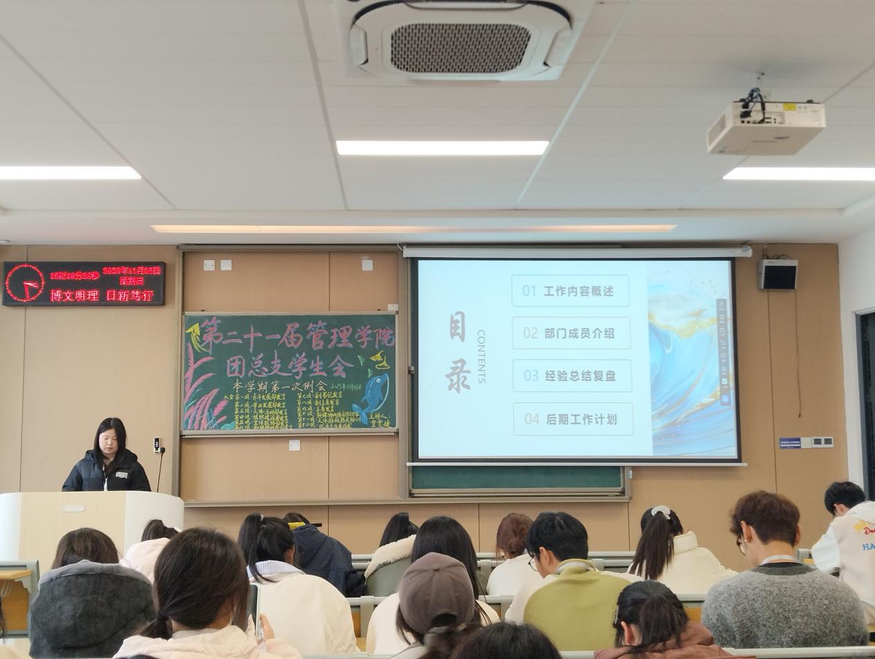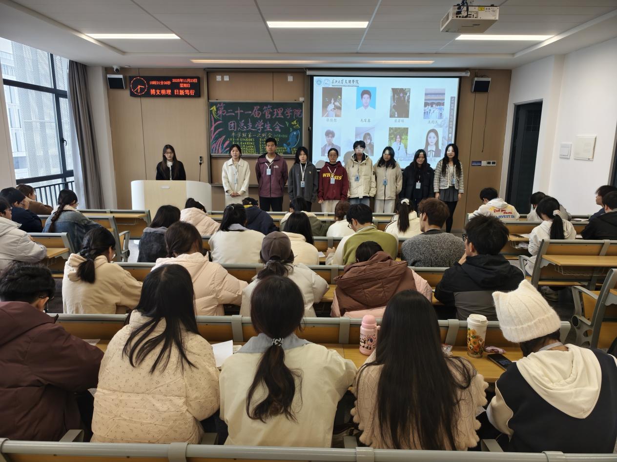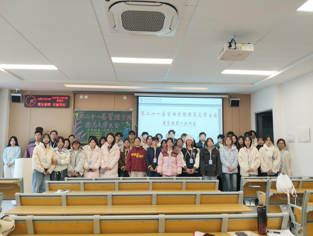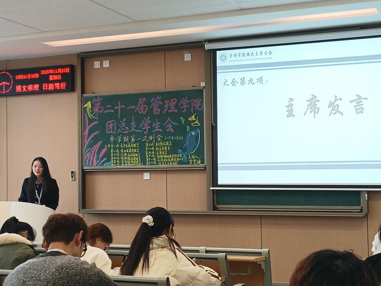 本网讯(通讯员 刘靖瑶)为总结近期工作成效、分析存在问题,规划下一阶段发展方向,2025年11月23日下午15:00,第二十一届管理学院团总支员工会第一次例会在教学楼C-422教室召开。本次例会由青年发展部覃雯婕主持,管理学院团总支员工会全体成员准时参会。