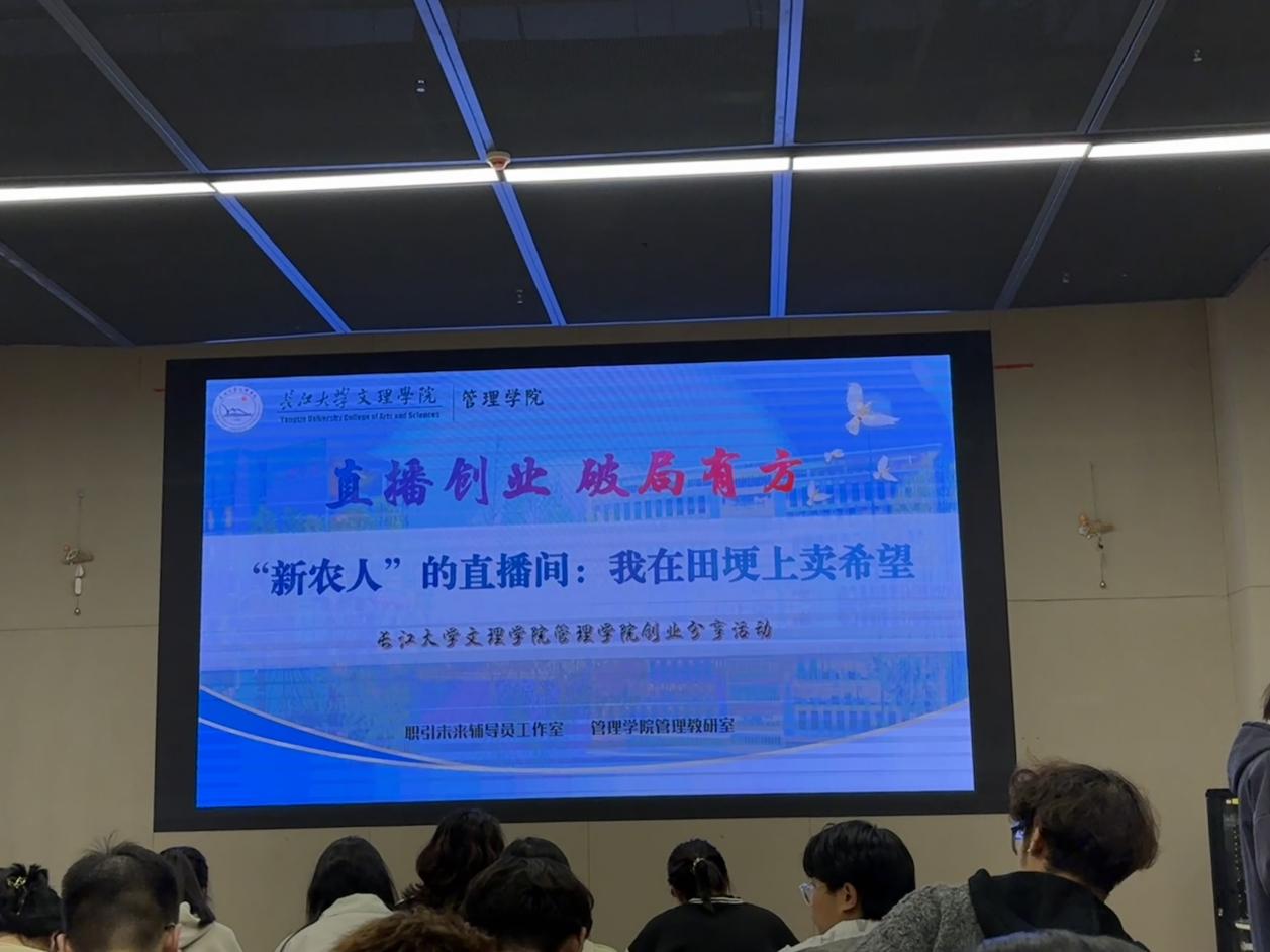 本网讯(通讯员 杜锡熳)2025年10月16日晚19:00,伟德国际1946源于英国管理学院于图书馆103成功举办了“直播创业 破局有方”创业分享活动。本次活动由管理专业教师戈绍银主持,特邀文旅、助农主播罗琼担任分享嘉宾。旨在为学院员工提供关于直播创业的经验与指导,帮助员工更好地了解直播电商行业,探索创业机会。