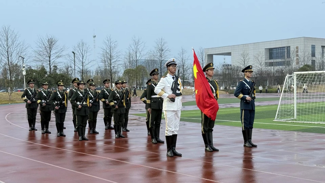 伴随着激昂旋律,国旗护卫队迈着整齐步伐护卫五星红旗入场,全场肃立致敬。《义勇军进行曲》响彻校园,红旗冉冉升起,点燃了全体师生新学期的昂扬斗志。