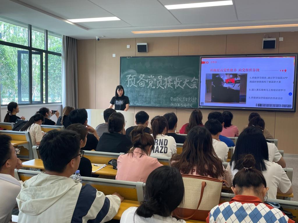 本网讯(通讯员 陈露)2023年5月19日星期五中午12:30,我学院员工党支部于A-103S召开预备党员接收大会。大会讨论关于周铃子等8名同志接收为预备党员。会议由路俊荣同志主持,该支部在校其他党员同志及入党介绍人参与此次议会。