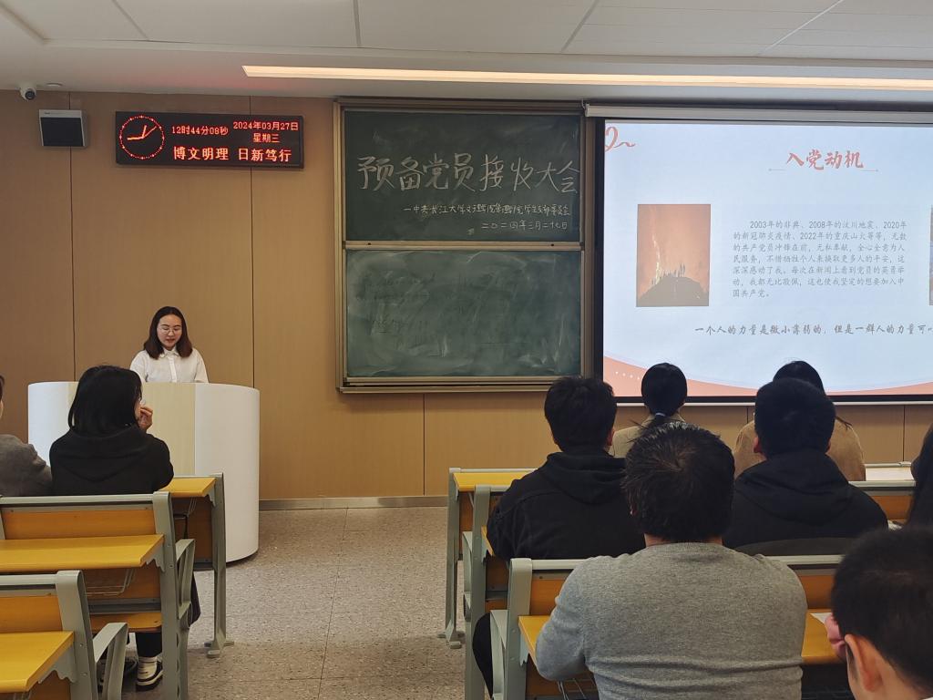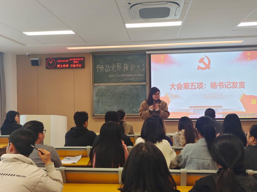 本网讯(通讯员 陈露)2024年3月27日星期三中午12:40,管理学院员工党支部于A-402S召开毕业生预备党员接收大会。大会讨论关于王倩同志接收为预备党员。会议由叶丽丽同志主持,支部在公司党员同志及入党介绍人参与此次会议。